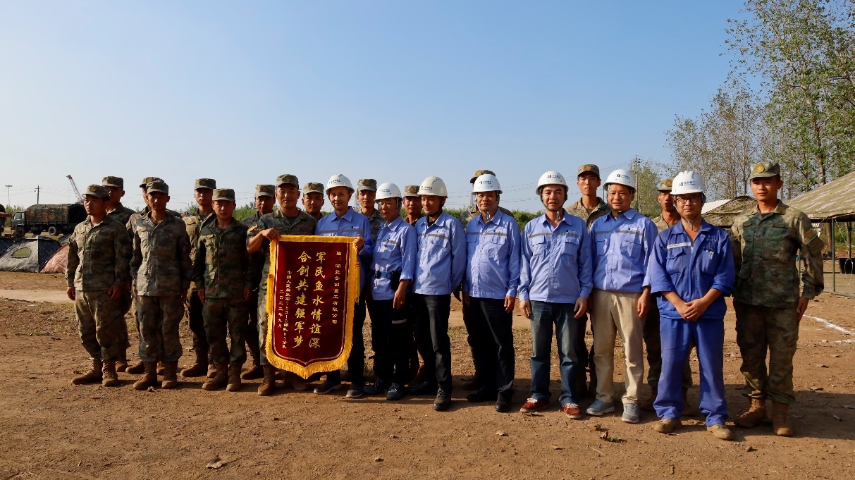 中國(guó)人民解放軍某部隊(duì)將一面寫(xiě)有"軍民魚(yú)水情誼深 合創(chuàng)共建強(qiáng)軍夢(mèng)"的錦旗送到湖北合創(chuàng)重工有限公司,感謝湖北合創(chuàng)重工為駐訓(xùn)部隊(duì)在訓(xùn)練用地、官兵生活等方面給予的大力支持和幫助,切切實(shí)實(shí)為駐訓(xùn)部隊(duì)排憂解難。