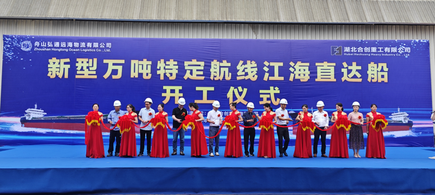 湖北合創(chuàng)重工舉行舟山弘通遠(yuǎn)海物流新型萬(wàn)噸特定航線江海直達(dá)船船建造開(kāi)工點(diǎn)火啟動(dòng)儀式。舟山市港航和口岸管理局、舟山弘通航運(yùn)發(fā)展有限公司、湖北合創(chuàng)重工有限公司等主、承、協(xié)辦單位領(lǐng)導(dǎo)、各工程項(xiàng)目單位代表、部門(mén)成員共計(jì)50余人參加儀式。